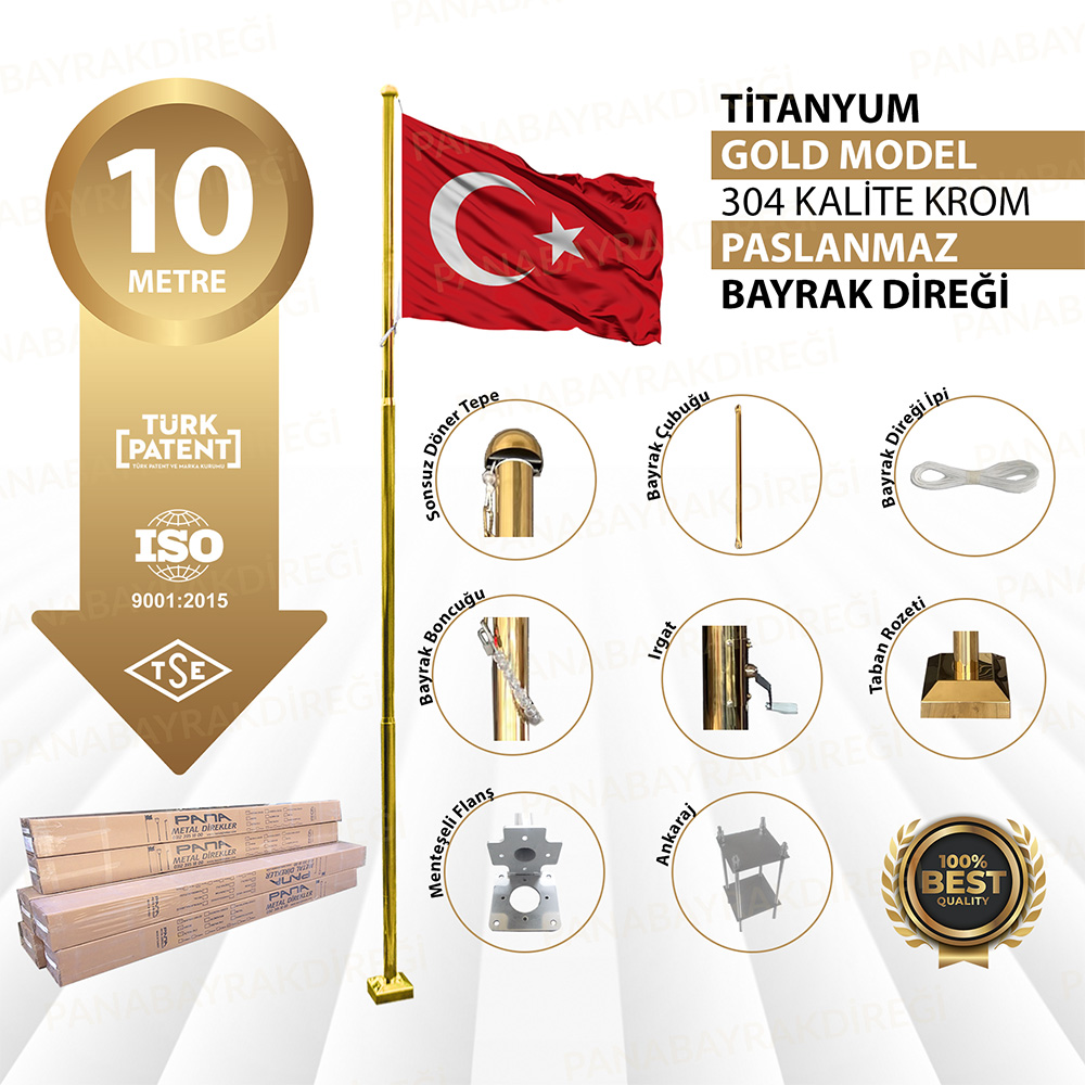 10 Metre Bayrak Direği Titanyum Gold Model Ürün Detayı