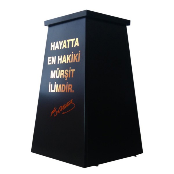 Atatürk Büstü kaidesi olarak imal ettiğimiz, bu modelin çift taraflı paslanmaz galvaniz sac üzerine elektrostatik fırın boya yapılmıştır .