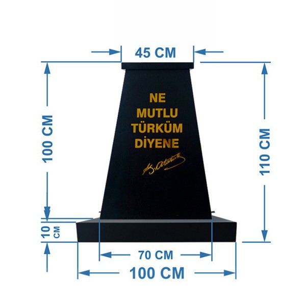 Atatürk Büstü kaidesi alt tablalı model olarak imal ettiğimiz, bu modelin çift taraflı paslanmaz galvaniz sac üzerine elektrostatik fırın boya yapılmıştır .